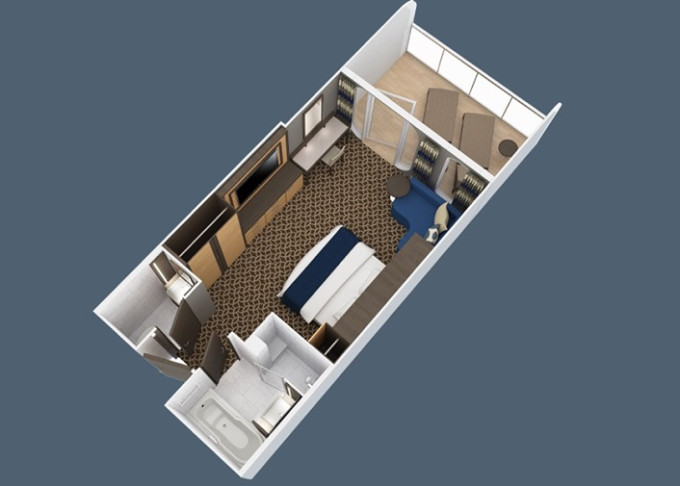 | 1U - Vnútorná kajuta s virtuálnym balkónom 15 m². Obrazovka veľkosti balkónových dverí s premietaným výhľadom. Centrálne umiestnenie. Max 3-4 osoby. | 694 € 694 € za osobu | ||