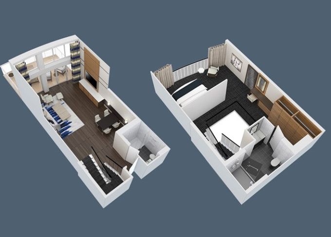 | OL - Owner Loft Suite s balkónom 90 m² + balkón 46 m². 2-podlažný apartmán. 8. paluba. Max 4 osoby. Výhody Royal Suite Star Class. | 5 110 € 2 555 € za osobu |