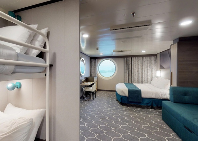 | 1K - Veľká vonkajšia kajuta Ultra Spacious 25 m². Neotvárateľné okno. 11. paluba. Oddelená časť s poschodovou posteľou. Max 6 osôb | 2 404 € 2 404 € za osobu |